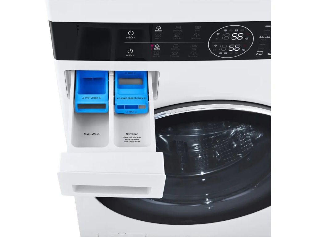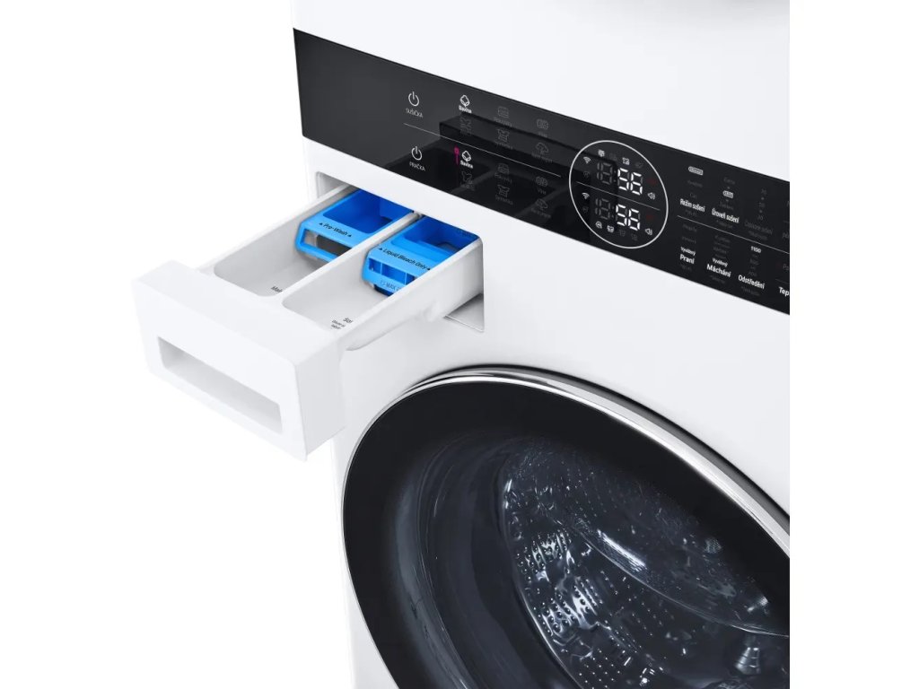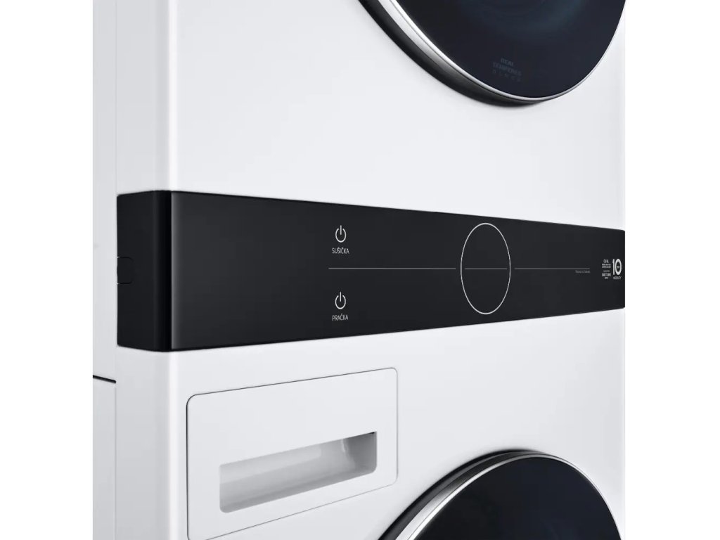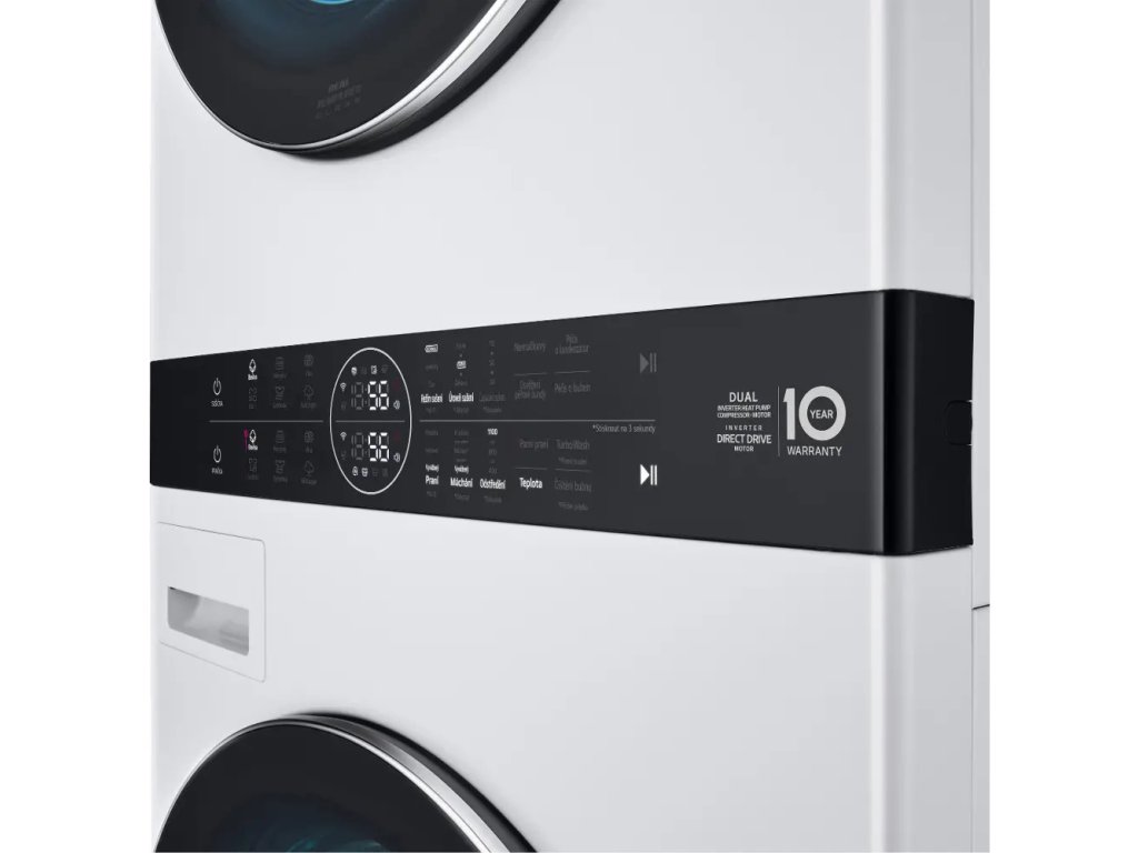 Ovládací panel je umístěn ve středu konstrukce prací věže LG WT1716WWF, takže je snadno dosažitelný. Velký LED dotykový displej zaručuje intuitivní obsluhu. K dispozici je 7 programů praní a 7 programů sušení. Doplňkové funkce zahrnují parní praní, dětskou pojistku, režim sušení energie/čas nebo funkci Připravit na sušení, která umožňuje dokončit celý proces praní a sušení za pouhou hodinu. Díky Wi-Fi připojení a aplikaci LG ThinQ můžete věž ovládat odkudkoli ze svého smartphonu – spustit praní na dálku, nastavit odložený start, stáhnout nové programy nebo sledovat spotřebu energie. Funkce Smart Diagnosis 3.0 umožňuje rychlou identifikaci případných závad a jejich odstranění často i bez nutnosti servisního zásahu.