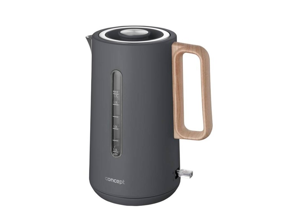 Nerezová rychlovarná konvice Concept RK3370 v elegantním designu matné šedé barvy disponuje objemem 1,7 l, značkovým konektorem Strix