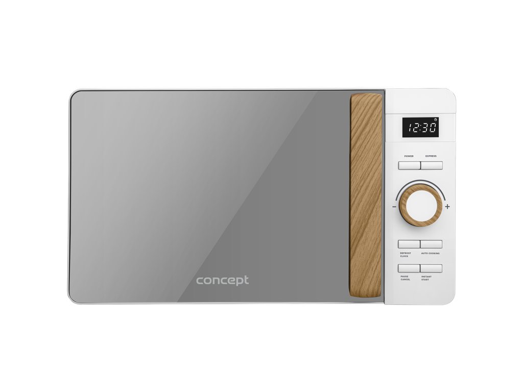 Mikrovlnná trouba Concept MT4420wh na první pohled osloví svým netradičním zpracováním v podobě zrcadlového skla na dvířkách a atraktivních dřevěných prvků. Perfektně zapadne do moderní i tradiční kuchyně a společně s ostatními spotřebiči Concept z řady Nordic vytvoří dokonale sladěný set.
