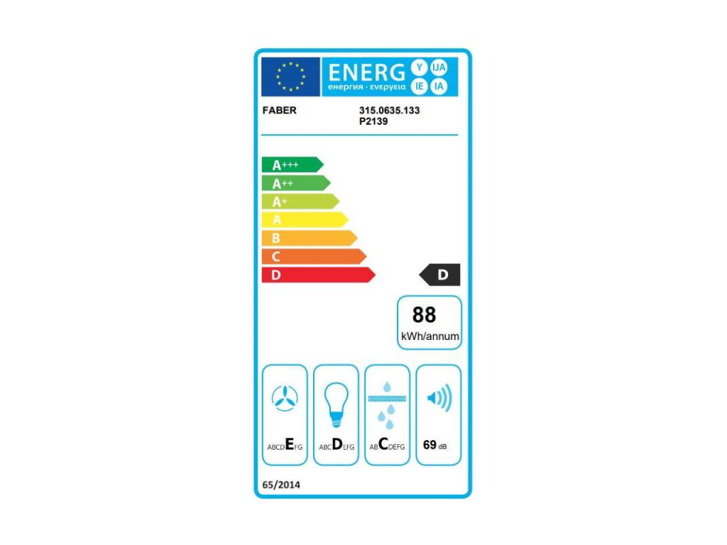 Odsavač par • Typ: výsuvný • Energetická třída: D • Výkon odtahu: 420 m³/h • Maximální hlučnost: 69 dB • Recirkulace • Odsávání do komína • Ovládání: posuvné • Počet rychlostních stupňů: 3