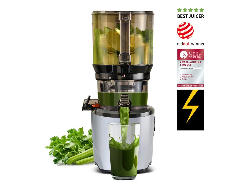 Klíčové vlastnosti odšťavňovače Kuvings Hands-Free Slow Juicer AUTO 10, stříbrná, matná