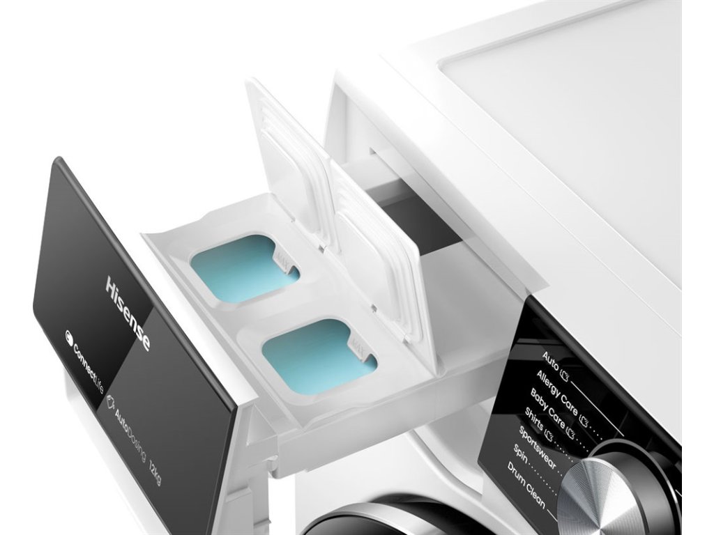 předem plněná pračka • energetická třída A • až 12 kg prádla • maximální hlučnost 72 dB • 1400 ot/min • 19 programů • invertorový motor • parní funkce • nastavení konce praní • Steam Mix • Quick Wash • audio signál • dětská pojistka • přehledný displej • Auto Dosing • ConnectLife • WiFi • ochrana proti přetečení • 84,5×59,5×66 cm