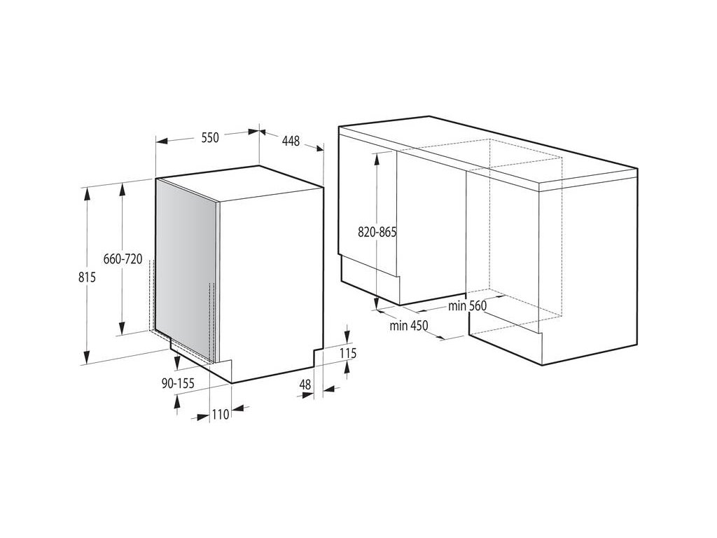 Vestavná myčka, Energetická třída: C;Max. hlučnost: 42 dB, Místo pro příbory: Zásuvka;Počet souprav nádobí: 10;Spotřeba vody na cyklus: 8 l, Automatické otevírání dveří, Rozměry (VxŠxH): 815x448x550 mm