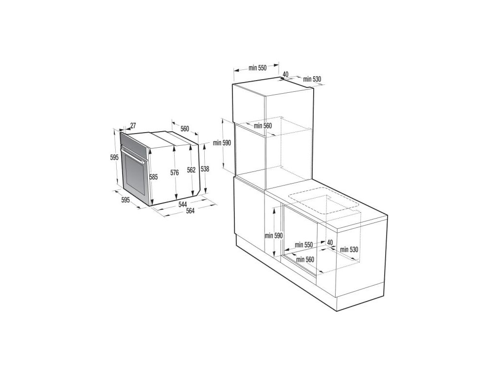 vestavná trouba • energetická třída A+ • objem 77 l • horkovzdušná trouba s kruhovým topným tělesem • 2 teleskopické výsuvy • displej • pyrolytické čištění • funkce GentleBake – pro udržení šťavnatosti • funkce WarmPlate – pro ohřev talířů • mobilní aplikace ConnectLife – pro dálkové ovládání trouby • bezpečnostní prvky: chladná dvířka, příprava na dětský zámek • V × Š × H: 59,5 × 59,5 × 56,4 cm