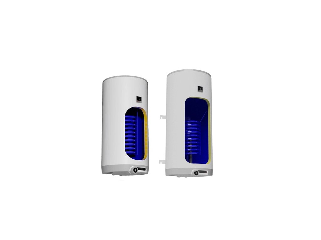 Kombinovaný svislý ohřívač vody s keramickým topným tělesem a jedním výměníkem pro další zdroj tepla.