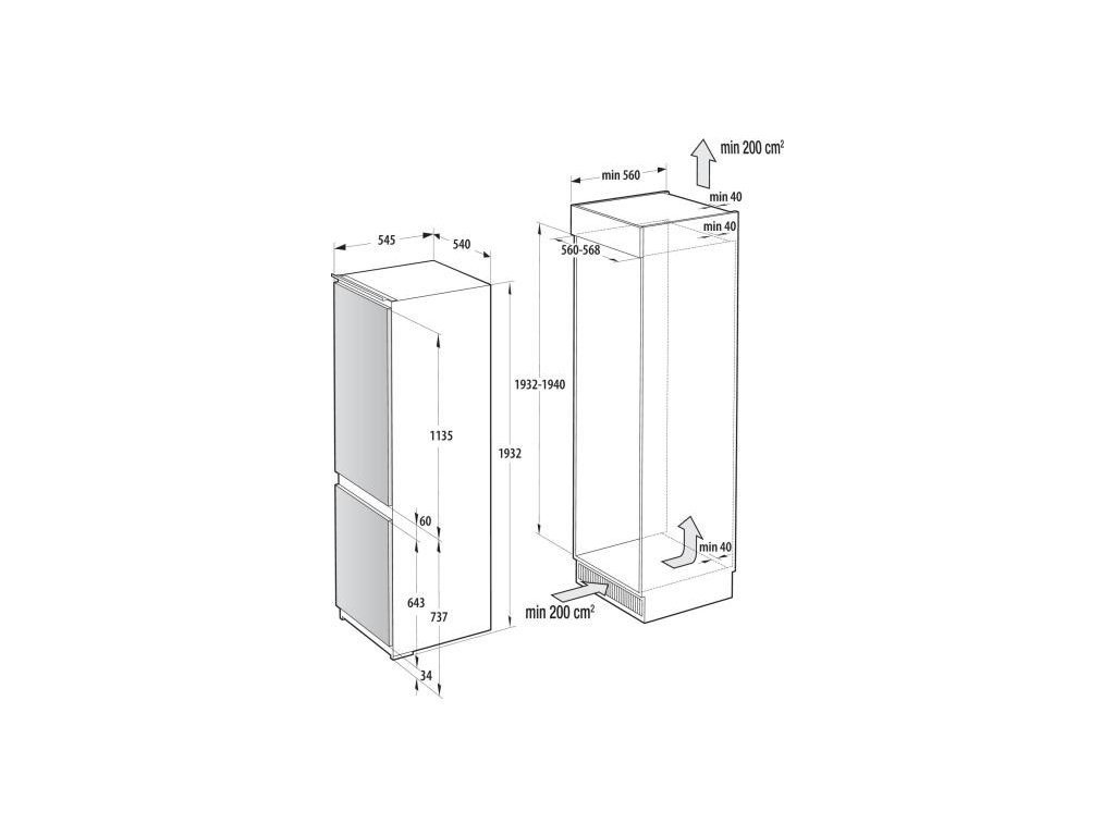 vestavná chladnička s mrazákem • výška 193,2 cm • objem chladničky 208 l / mrazničky 76 l • energetická třída E • technologie AdaptTech – pro úsporu energie a prodlužení čerstvosti potravin